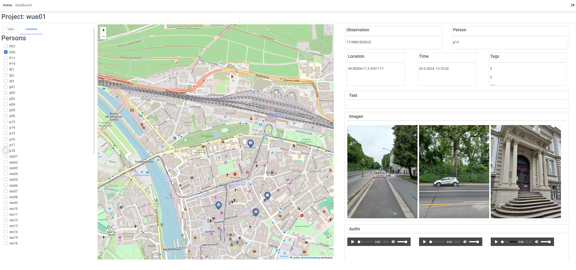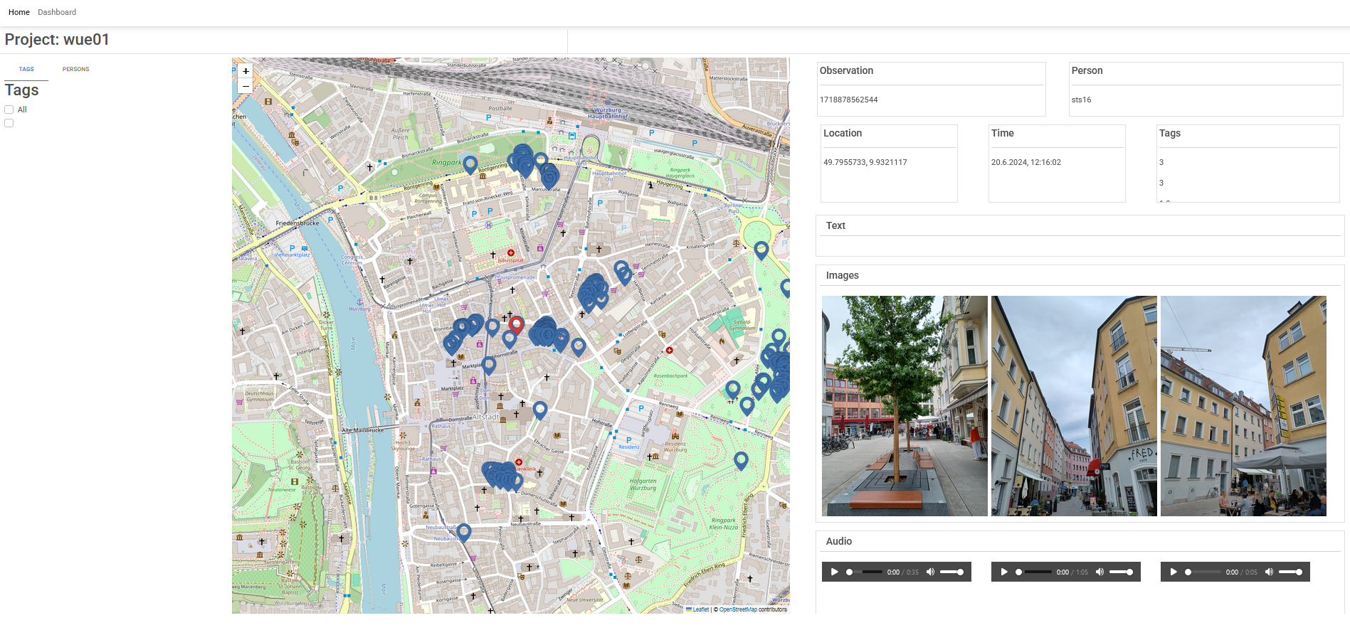 The dashboard then allows researchers to view the collected data. The integrated view shows all data linked to an observation and thus enables an initial exploration of possible correlations. There are also various filter options, for example to display only observations made by a specific person.