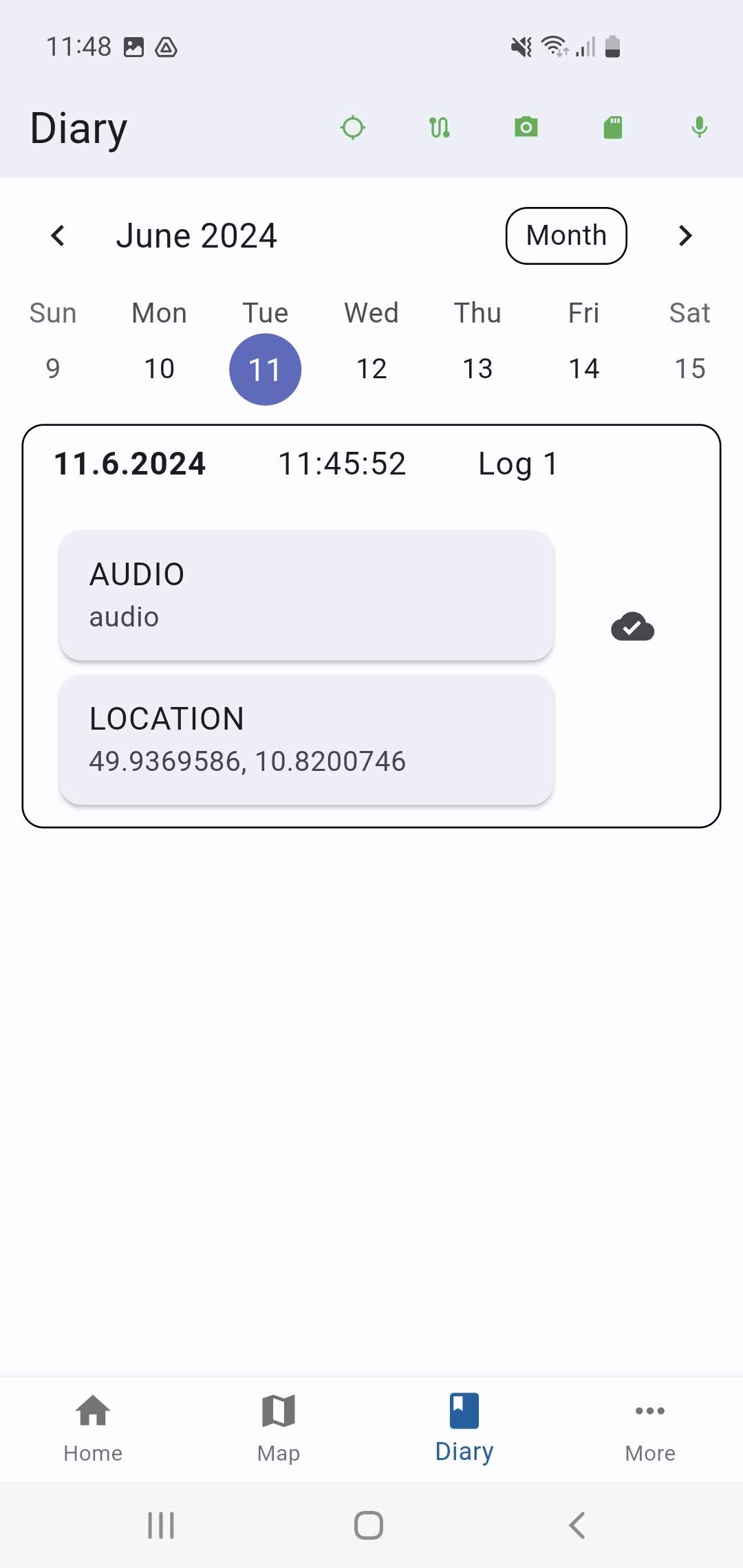 - The observations can then be viewed either via the integrated map service using the location (if the location of the observation was recorded) or via the “Diary” tab in chronological order.